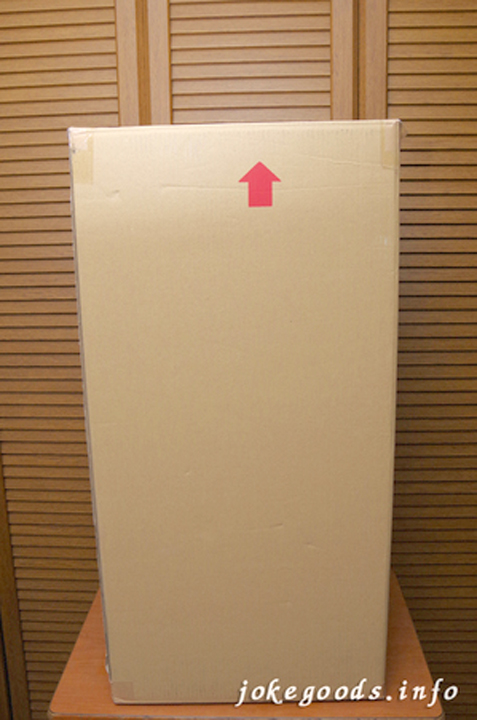 注文するとこの状態で届きます。大きな無地の段ボール箱ですが、中はぬいぐるみなので重さはそれほどありません。本体の公称重量は約1.8kgですから、片手でも楽に持ち上げられる重さです。