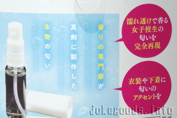 パッケージ裏側には「濡れ透けで香る女子校生の匂いを完全再現」「香りの専門家が~」とありますが、ここは「うん、うん」と話半分で聞いておけば良いところです。