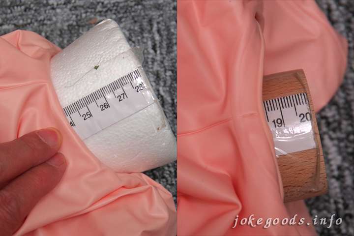 まずは気になるオナホポケットの大きさから計測していきます。ホールポケットの深さは約18.5cm、内周は約23.8cmで、かなり大き目のオナホもいけそうです。