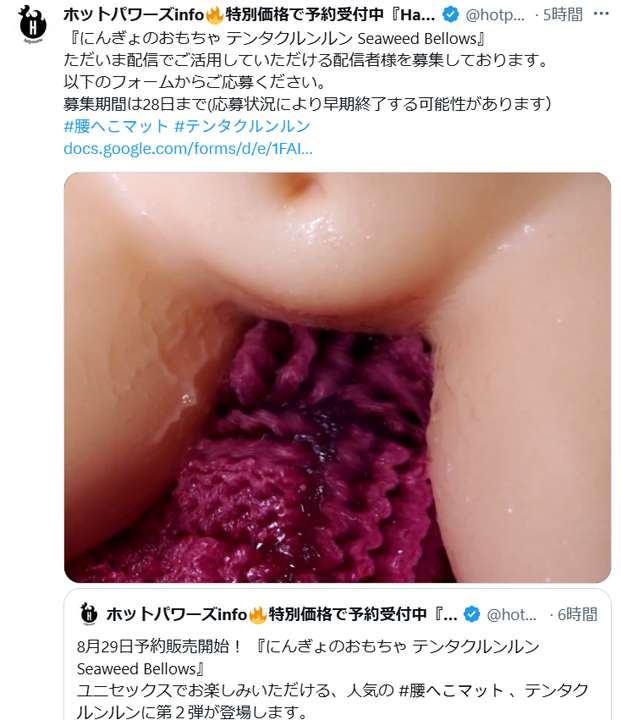 最後にテンタクルンルンの派生モデル『にんぎょのおもちゃ テンタクルンルン Seaweed Bellows』が8月29日に予約開始とのことです。まだ商品ページはありませんが、1週間後の受付スタートです。