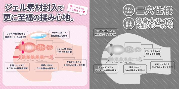商品名を見た時はオナホなどである素材を変えたバリエーションと思いましたが、「お尻部分が柔らかくなって新登場!!」というコピーなので「お尻部分以外は柔らかくなっていない」という解釈も出来そうです。