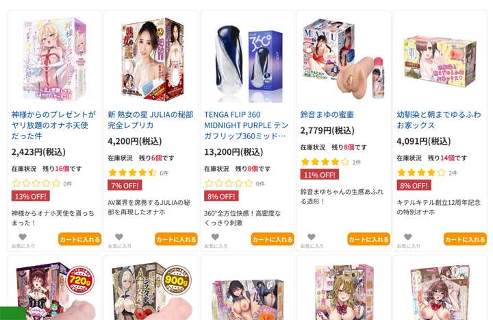 オナホ関連は1ページ目~2ページ目上段にあります。3ページ目から4ページ目にかけてはエアドールや電動オナホが並んでいます。