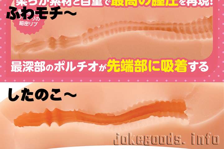 試しに今回の「ふわモチ」と「したのこ」の内部構造写真を比べてみます。180度上下を入れ替えただけで同じ内部構造です。しかし後述しますがこれは床オナらしい高刺激を楽しめる内部構造で、この内部構造を無理に変えなかったのは賢明な判断だったと思います。