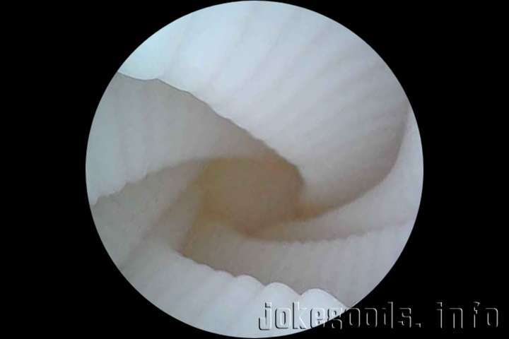 裏返して使用状態にした内部は、こんな感じの螺旋+横ヒダの内部構造になります。
