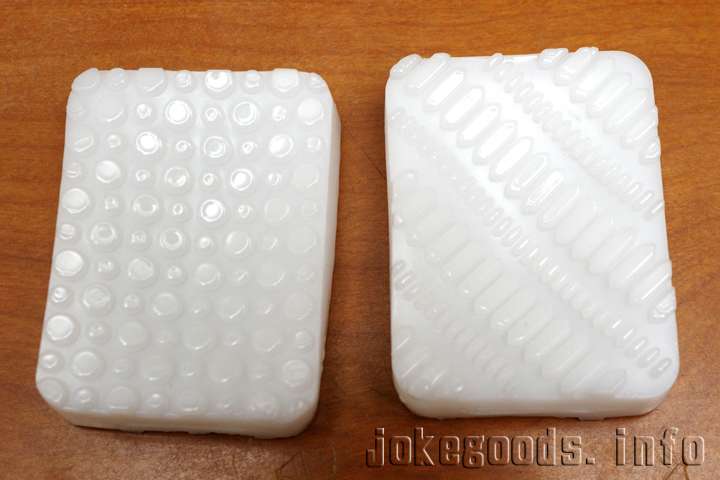 表面は幾何学的な模様ですが、ドットとヒダ(?)の2種になっています。厚みが薄いので素材の柔らかさの測定は難しいのですが、-1程度の柔らかさではないかと思います。