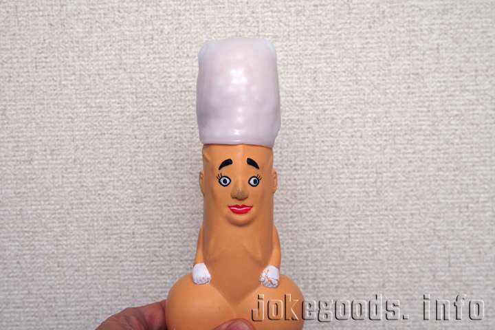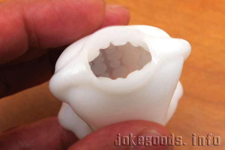 謎の人形に被せてみました。これで亀頭を刺激すれば気持ち良いというところです。